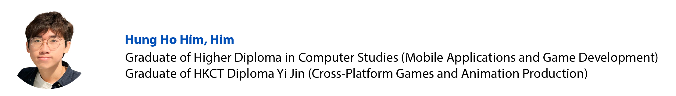 'This programme covers a wide range of content and keeps up with the latest technological developments, allowing us to grasp the latest industry techniques. HKCT has excellent instructors and also provides professional guidance during their free time. They are happy to communicate with us and encourage us to innovate constantly. This inspires me to create mobile games and mobile applications and share my creative achievements with everyone.'