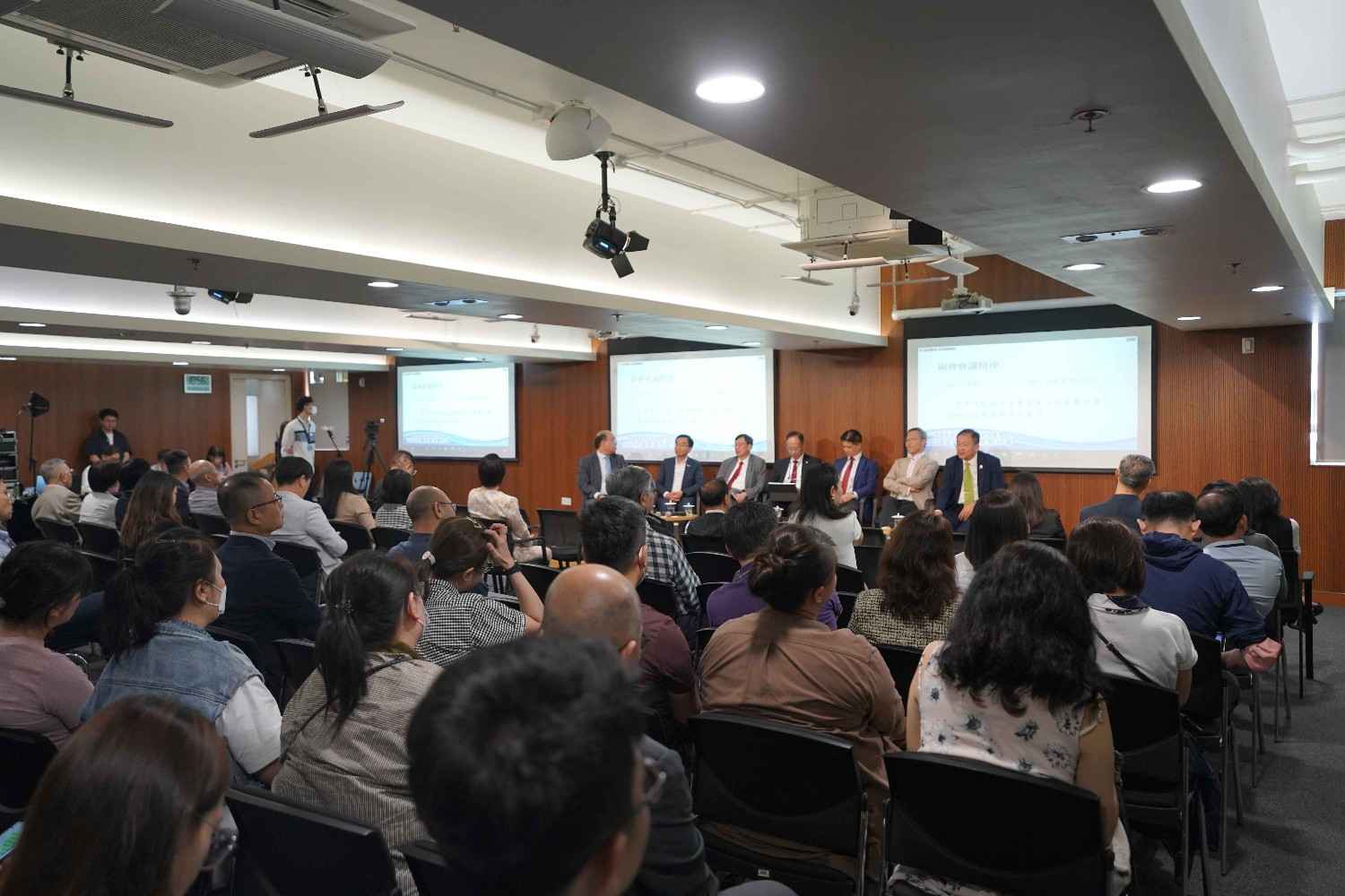 The “Sharing Session on the National Two Sessions 2024 by National CPPCC members from Higher Education” organised by HKCT Institute of Higher Education (HKCT), Hong Kong Baptist University and Hong Kong Higher Education Convergence, with the coordination of the Beijing - Hong Kong Academic Exchange Centre and the Hong Kong Hebei Friendship Association was held today (22 April) at the HKCT Jockey Club Undergraduate Campus. Over 200 participants attended both on-site and online to listen to the insights and experiences shared by various CPPCC members from higher education institutions from the National Two Sessions.