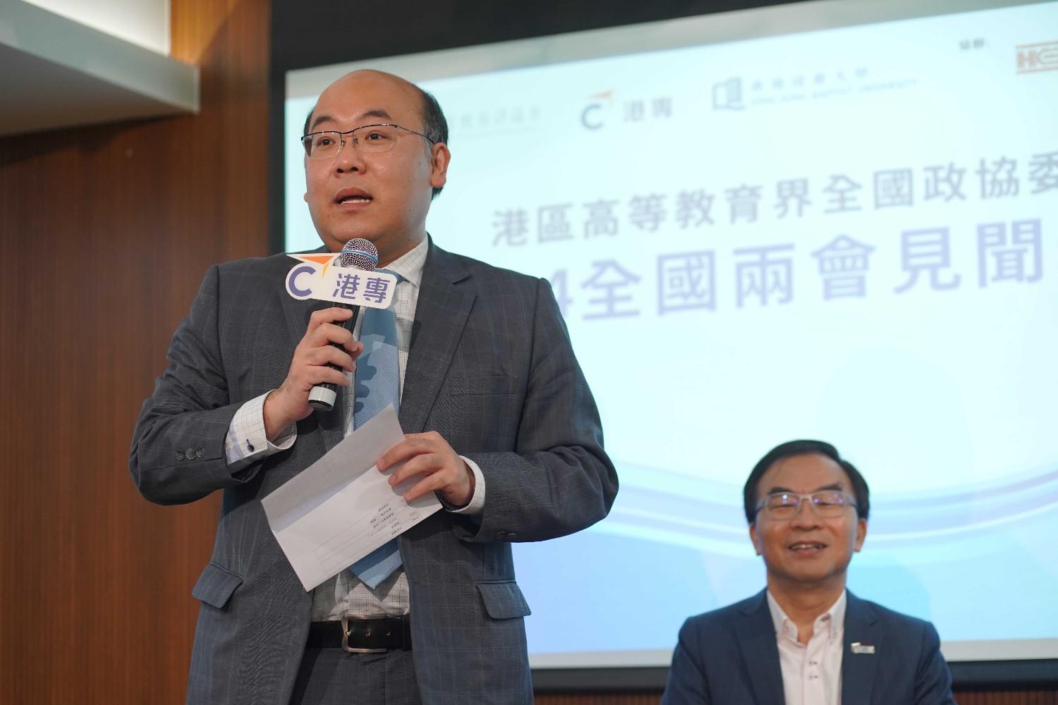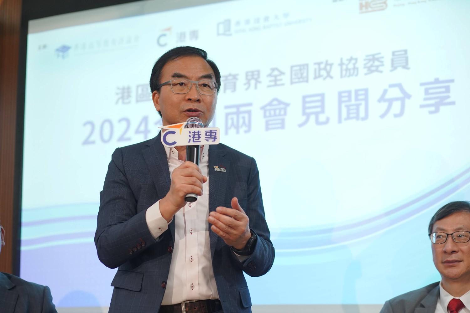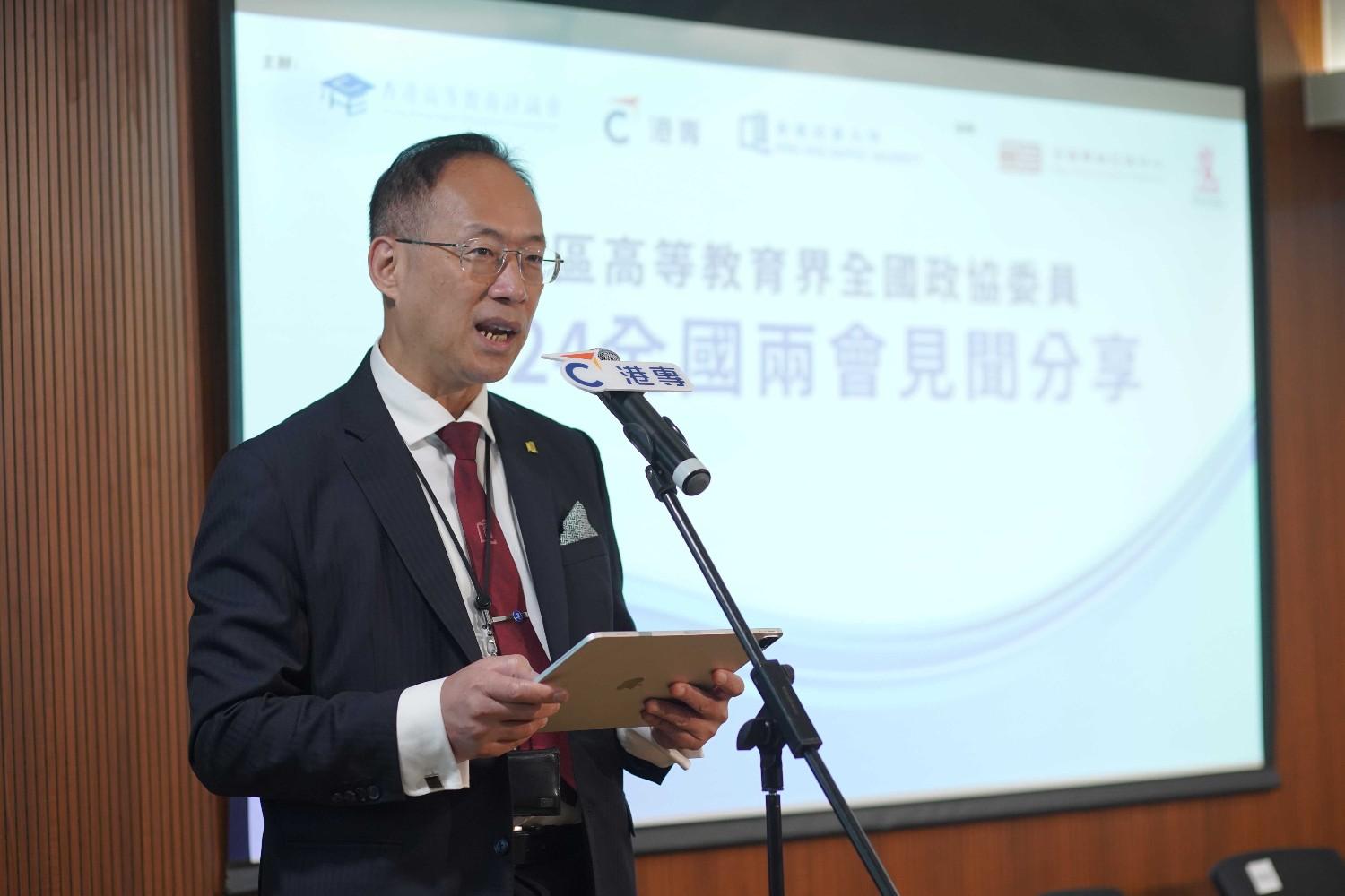 In his welcome speech, Alexander WAI Ping Kong, President and Vice-Chancellor of Hong Kong Baptist University expressed that today's sharing session was not only for exchanging ideas and sharing experiences but also for building consensus and encouraging progress. He believed that through this exchange and sharing, participants would have a deeper understanding of the spirit and important messages of the 2024 National Two Sessions, as well as the significant role of higher education in national development. He also emphasised the rare opportunity for everyone to learn from the experiences of the CPPCC members and contribute to various fields including higher education in Hong Kong, the Greater Bay Area, and the country.