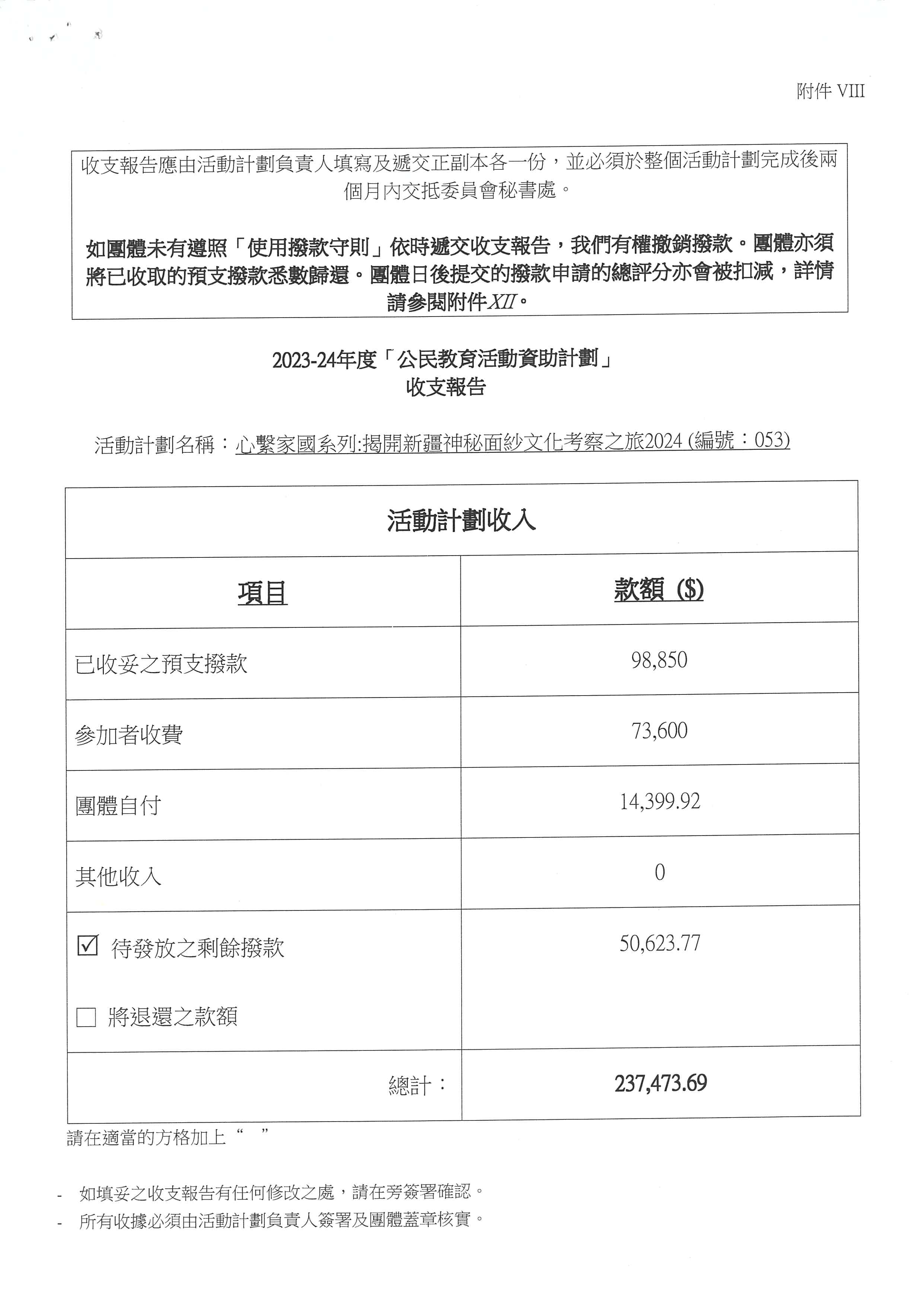 青年内地交流资助计划“云与青𡶶 - 云南义工服务及民族体验双向交流计划 2018-19”收支报告