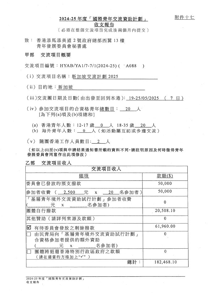 国际青年交流资助计划“新加坡交流计划2025”收支报告