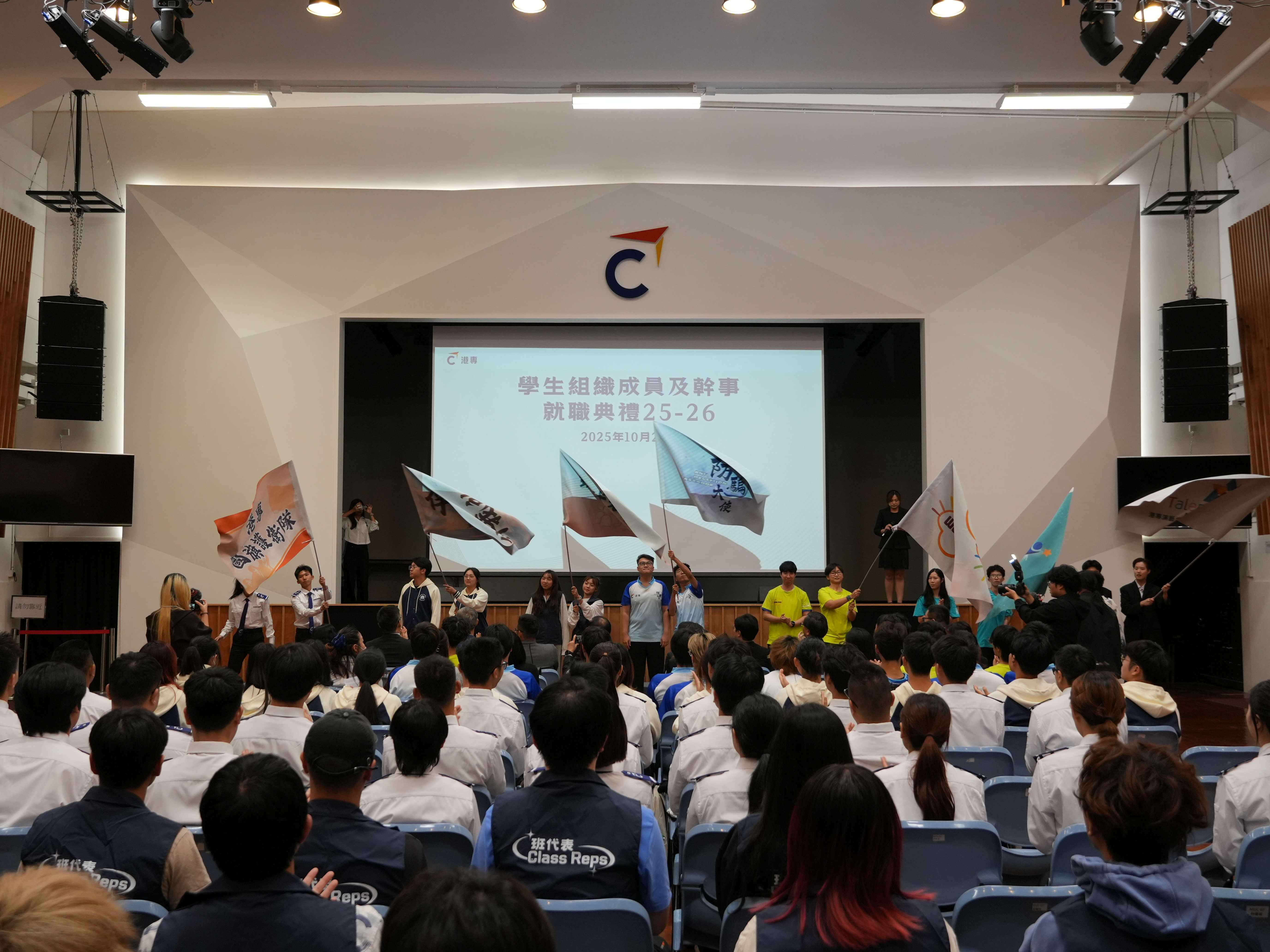 港专学院及香港专业进修学校(“港专”)于2025年10月21日,假马鞍山本科校园地下综艺馆举行“学生组织成员及干事就职典礼25-26”,七个学生组织的成员及干事在校领导的见证下,正式宣誓就任,承诺以诚信、公正、积极的态度服务同学、学校及国家。