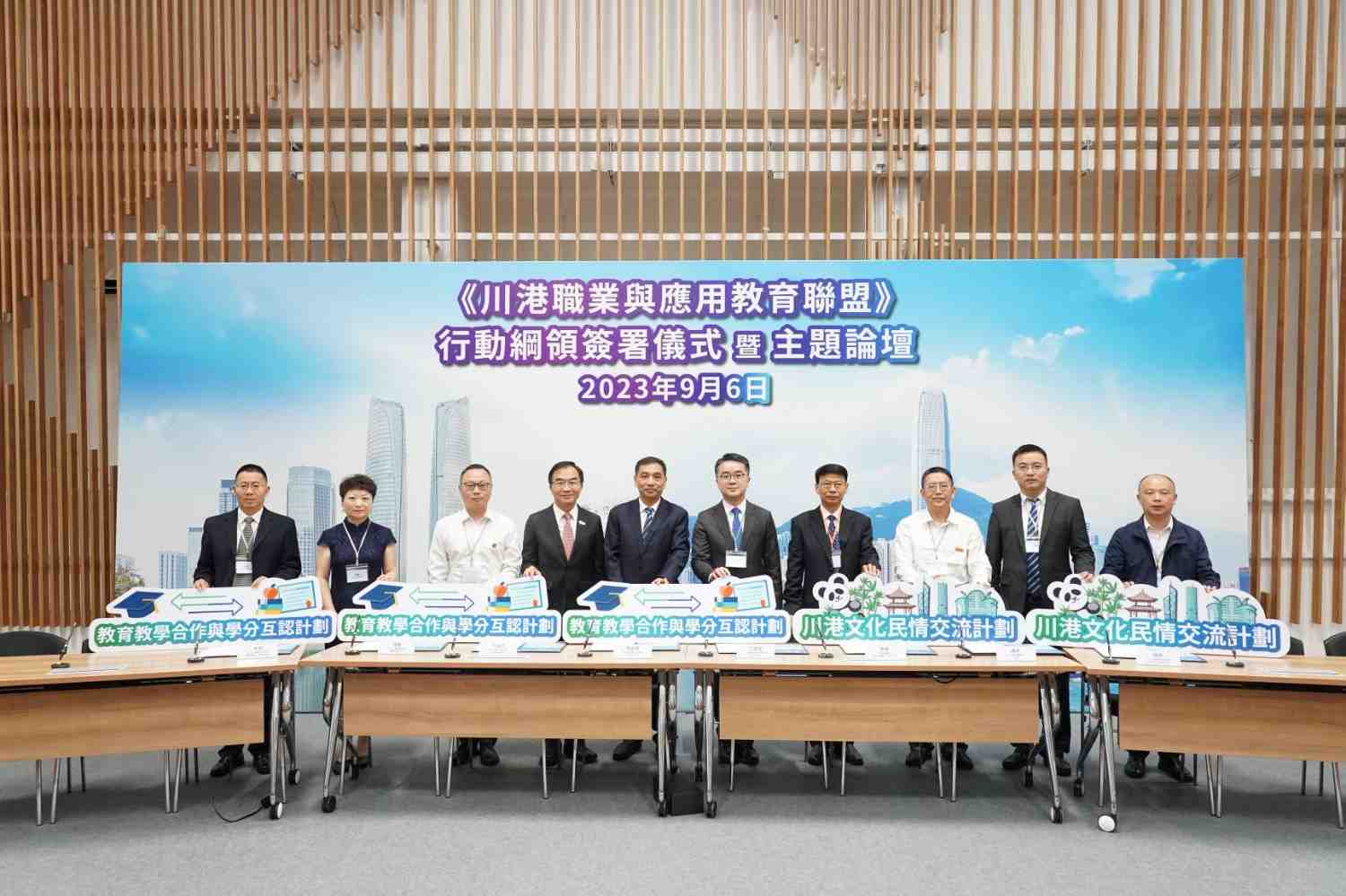 「川港教盟」代表共同簽署2023至2025年行動綱領,同時簽署兩個平台計劃協議備忘錄,包括「川港文化民情交流計劃」、「教育教學合作與學分互認計劃」,以及「應用教育文憑全方位學習活動合作備忘錄」。此外,各川港院校亦同時簽署5份合作備忘錄,包括交換生、護理專業、製衣紡織、網絡科技及運動體育等。