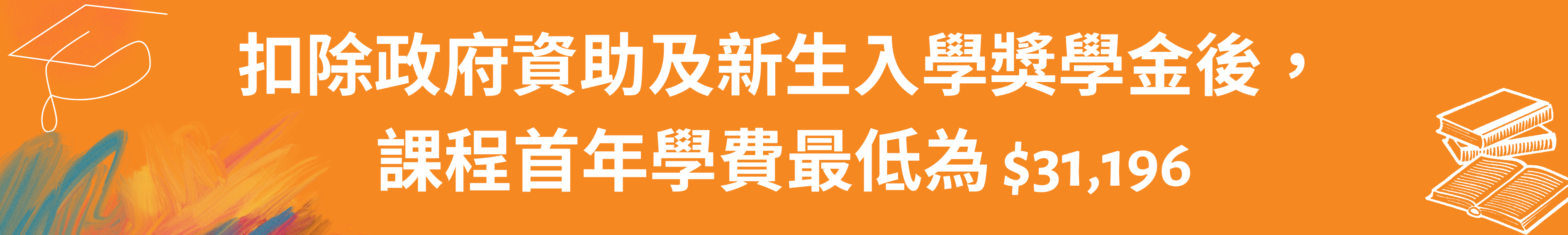 本課程(非實驗室為本)已獲納入教育局的「指定專業/界別課程資助計劃」。在2026/27學年,合資格本地學生修讀本課程可每年獲最高$23,390的資助金額,扣除最高資助金額後的首年學費為$47,378。請注意,只有本地學生*才合資格獲得有關資助。